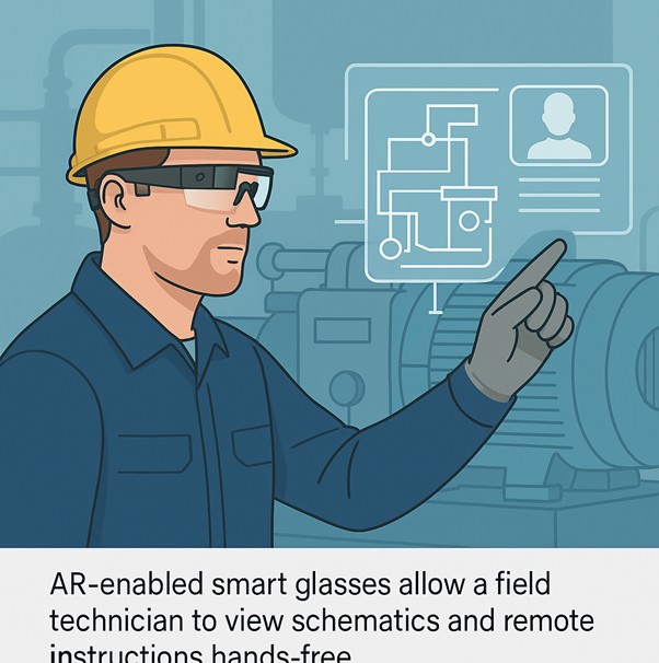 Smart glasses have quickly become field technicians’ “extra eyes.” In one wind-turbine trial, crews using AR eyewear cut the time for a complex wiring task by 34%. AR lets remote experts actually see the problem alongside the technician: video feeds from the glasses enable instant guidance. For example, Coca-Cola maintenance staff now use AR glasses to share what they see with plant engineers miles away – eliminating travel time and slashing delays. Similarly, at GE Aviation, mechanics wearing AR headsets improved assembly efficiency by roughly 8–12% and reduced errors, because they no longer stop to flip through guides.